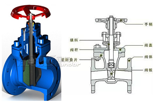 明桿閘閥和暗桿閘閥剖面圖