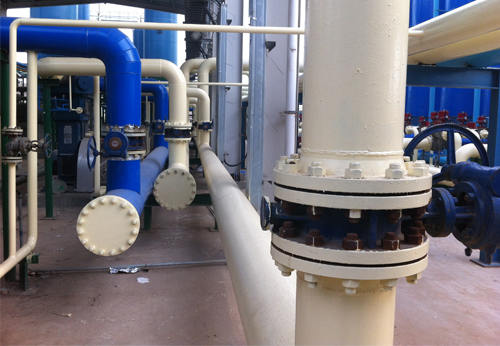 循環水系統: 循環水系統的功能是將冷卻水(海水)送至高低壓凝氣器去冷卻汽輪機低壓缸排汽,以維持高低壓凝氣器的真空,使汽水循環得以繼續。另外,它還向開式水系統和沖灰系統提供用水。